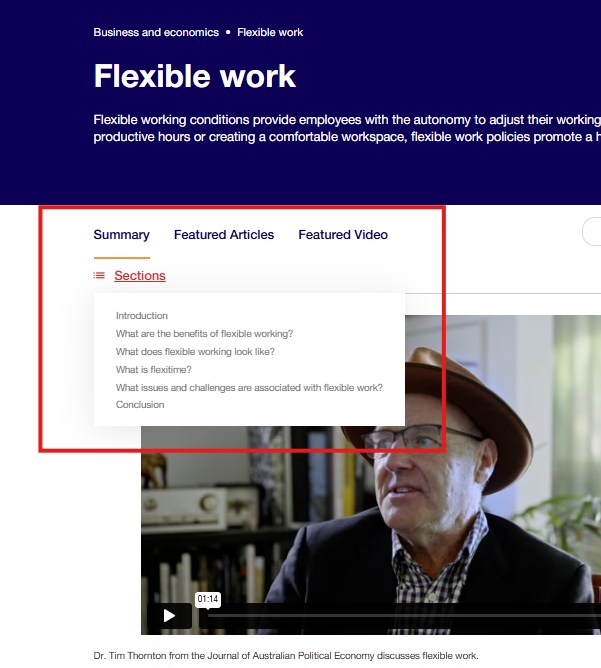 Explore subjects have had a 'sections' index added along the top navigation bar which allows users to navigate to each heading of the selected subject.