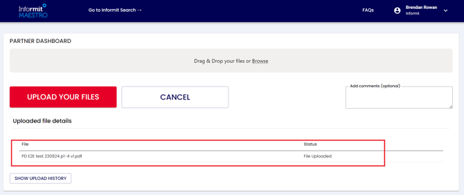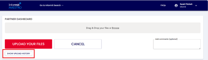 *Note: Upload history from the old Delivery Box is not available via the Partner Dashboard. Please contact us if you require information on older file submissions.