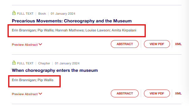 For books and conferences, authors are now listed under each chapter. This replaces the page numbers of each chapter which was previously listed
